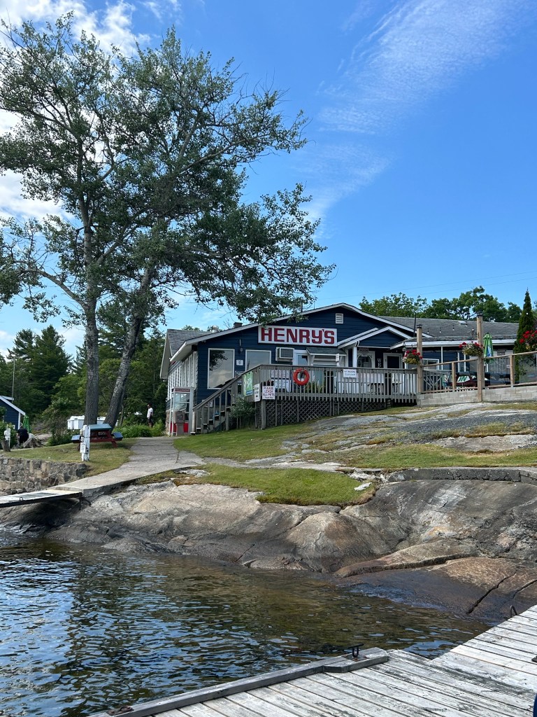 June 14th, and we were heading north – past Honey Harbour, Muskoka Landing Channel, Monument Channel, O’Donnell Point, Starvation Bay to Henry’s Fish Restaurant at Sans Souci. Wind was NW and around 12 knots. It was early season and Henry’s was only open on the weekends. But the owners let us stay overnight at the docks. Once again, we were all alone.