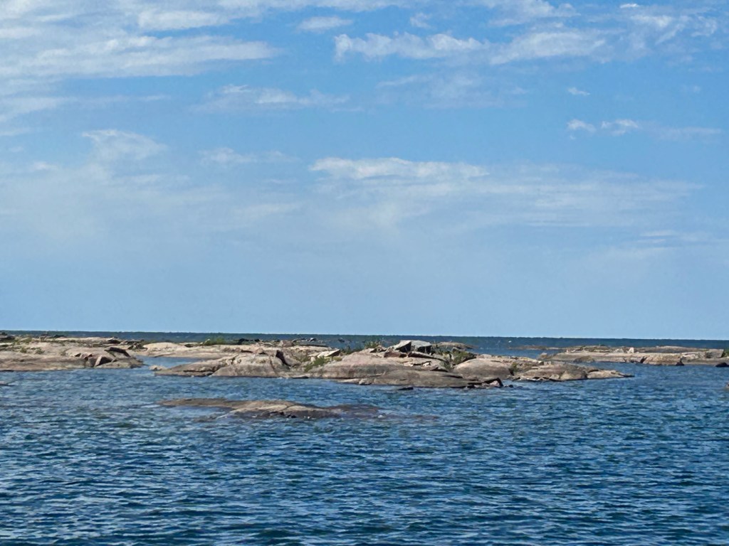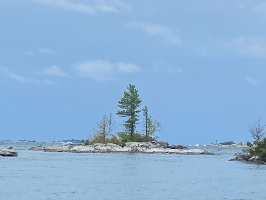 There are a lot of islands in the Thirty Thousand Islands. There are large islands like Parry, Sandy, Beausoleil and Franklin. These islands are miles long and miles wide. There are many, many small islands that are measured in acres and often home to a summer cabin. Some are protected and their still waters and lusher vegetation reflect that. Other islands are small and nothing more than rocky bumps. Then there are the outer islands.